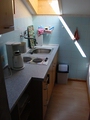 - kleine Küche mit Kaffeemaschine, Toaster und Microwelle